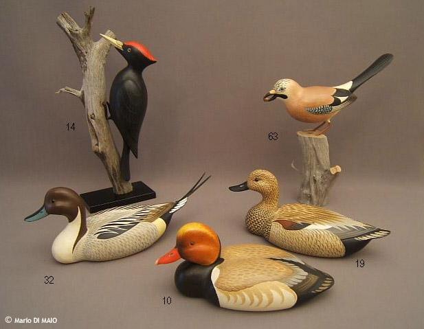 10 : NETTE ROUSSE - Red-crested Pochard / 14 : PIC NOIR - Black Woodpecker / 19 : CANARD CHIPEAU - Gadwall / 32 : CANARD PILET - Northern Pintail / 63 : GEAI DES CHENES SUR PATTES - Eurasian Jay on legs