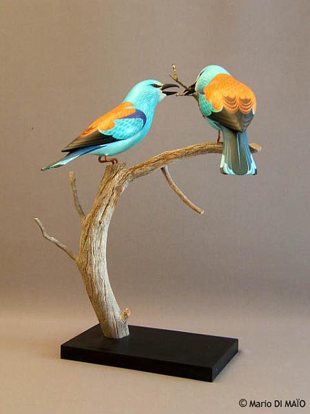 COUPLE_ROLLIERS_OFFRADE_01.jpg - L'OFFRANDE DU ROLLIER (Coracias garrulus)- The roller's offering